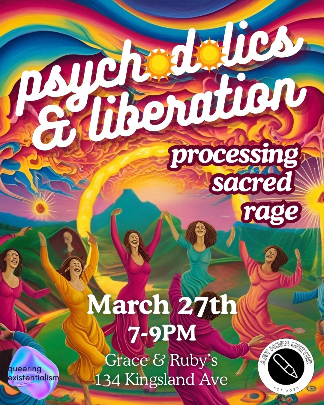 Held at Grace and Ruby’s in collaboration with @queeringexistentialism, this workshop created a rare and intentional space to confront rage not as something to suppress, but as a sacred, transformative force. Through guided discussion and creative exercises, we explored how psychedelics and liberation work intersect in helping us process the deep anger born from personal and collective injustices. We turned that energy into art, writing, and shared reflection—reframing rage as a tool for healing, clarity, and change. The gathering challenged the silence around difficult emotions and reminded us that creating from truth, even when it burns, is part of liberation itself.